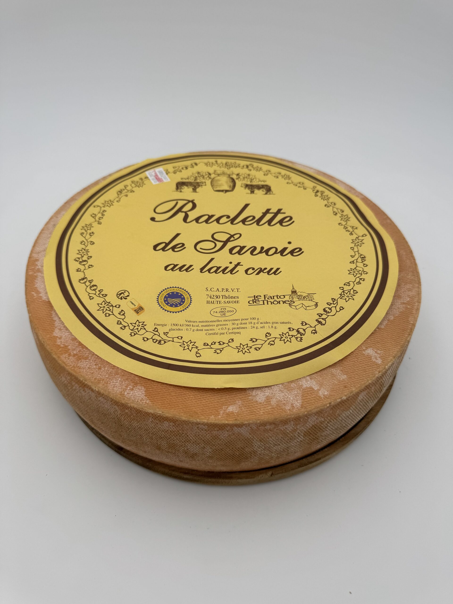 La raclette de Savoie au lait cru est un fromage emblématique des Alpes, façonné avec savoir-faire par les fromageries savoyardes qui perpétuent une tradition séculaire. Produite exclusivement à partir de lait cru de vaches locales — Tarine, Abondance ou Montbéliarde — elle exprime pleinement la richesse d’un terroir de montagne préservé et l’exigence d’une fabrication artisanale authentique.