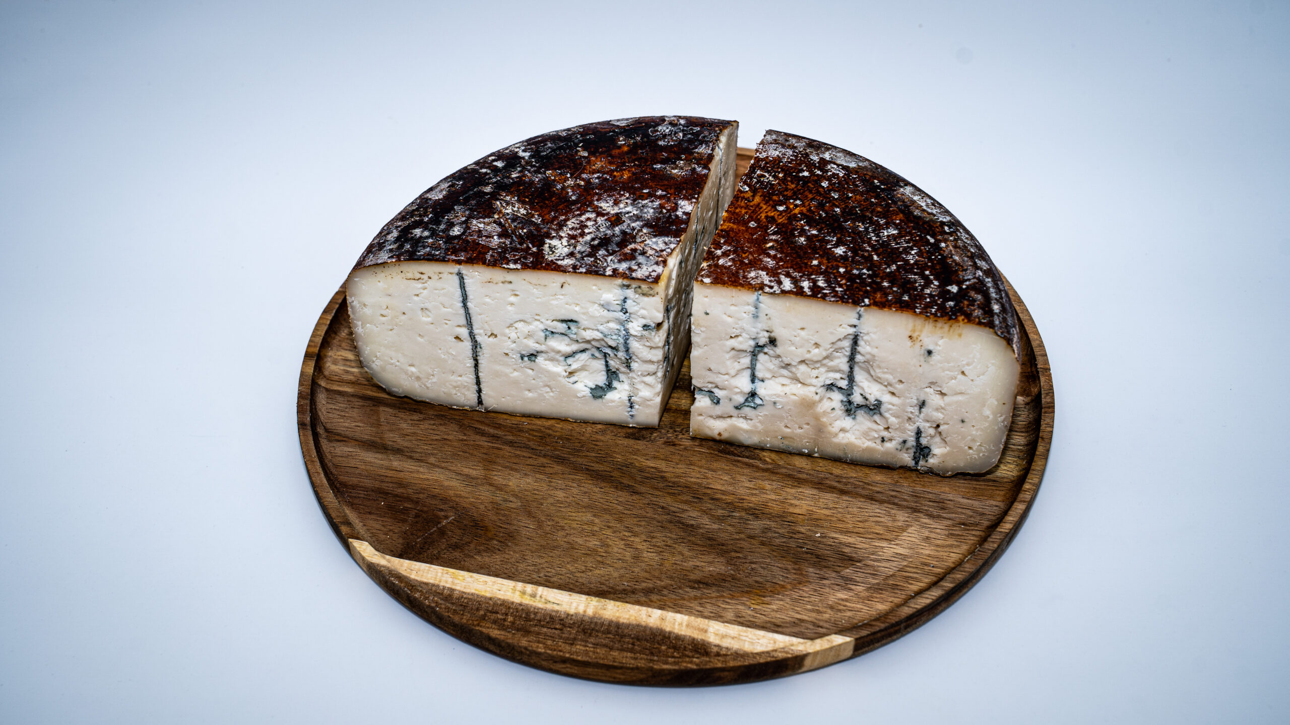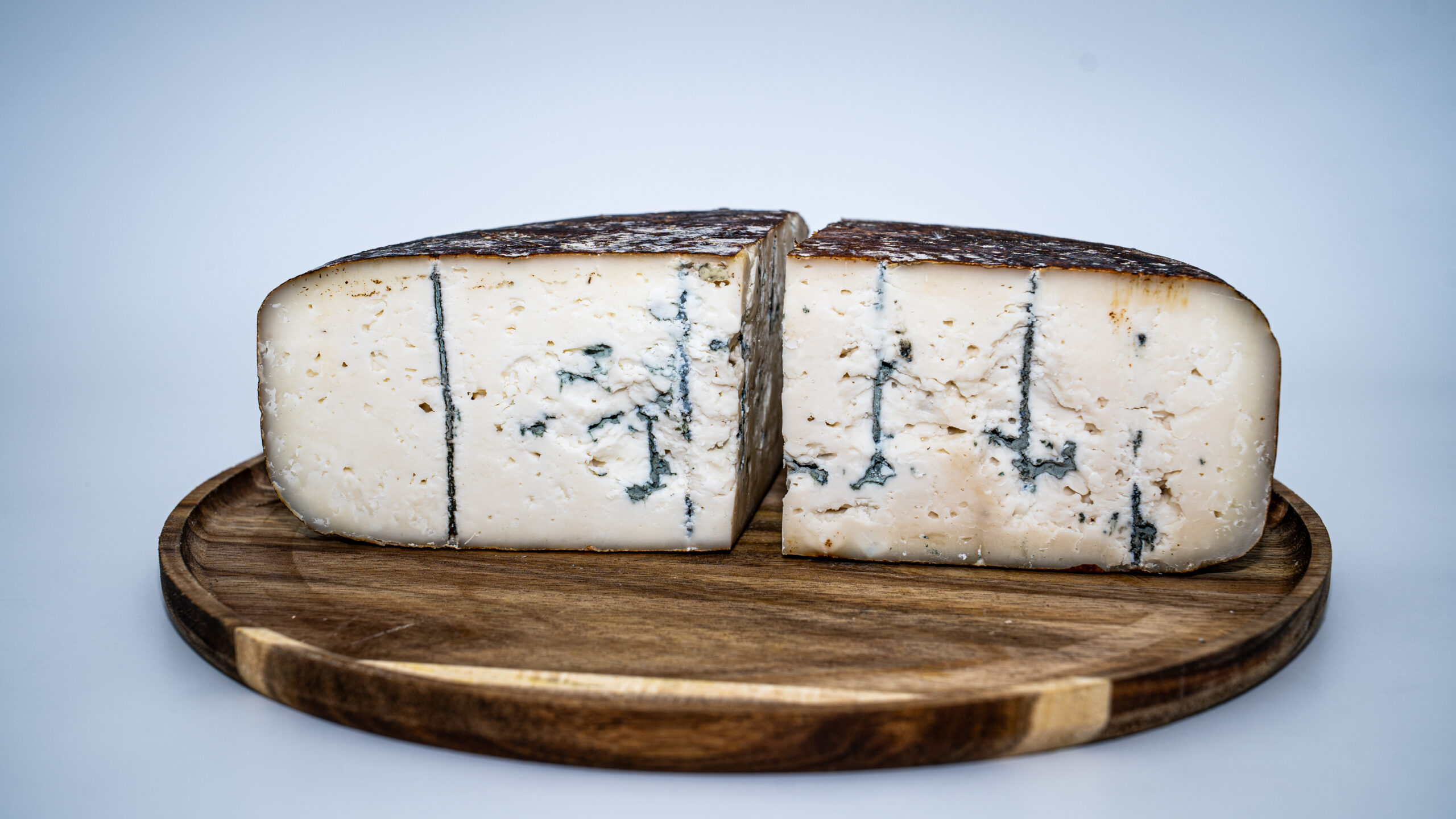 Sous sa croûte rustique et tachetée , se cache une pâte ivoire veinée de bleu, ferme mais fondante ,